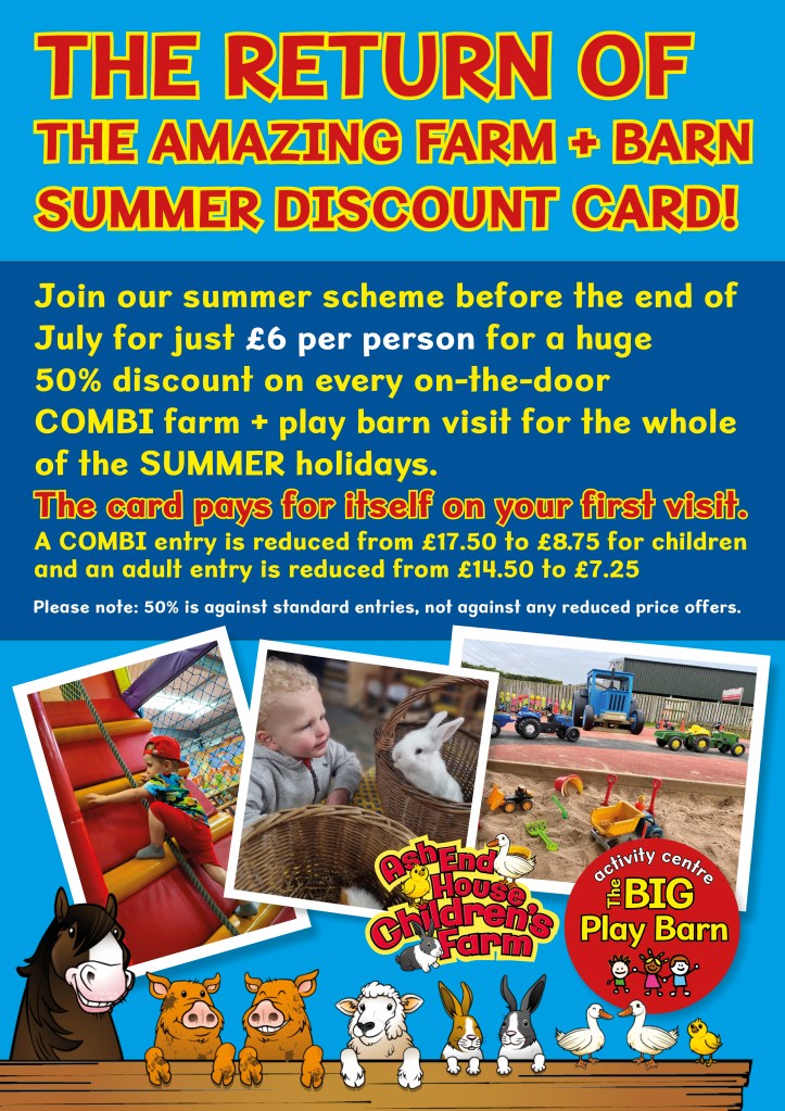For a one-off membership fee of £6 per person (children and adults), each person then gains a 50% discount on every standard COMBI Farm and Play Barn entry, saving £8.75 per child per visit and £7.25 per adult.