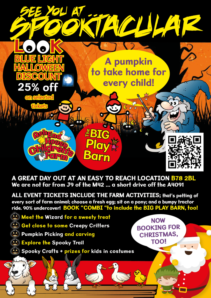 Dates: We are opening the Halloween event on the weekend of the 18th/19th October with a special lower “opening weekend” price … JUST £1 SURCHARGE for adults and children on top of normal farm prices.
